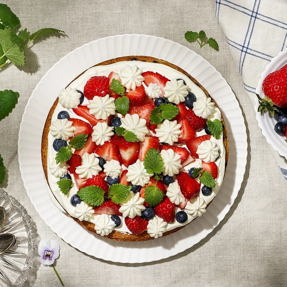Sommartårta med apelsingrädde, blåbär och jordgubbar