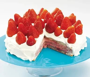 Sockerkaka med cheesecakekräm och jordgubbar
