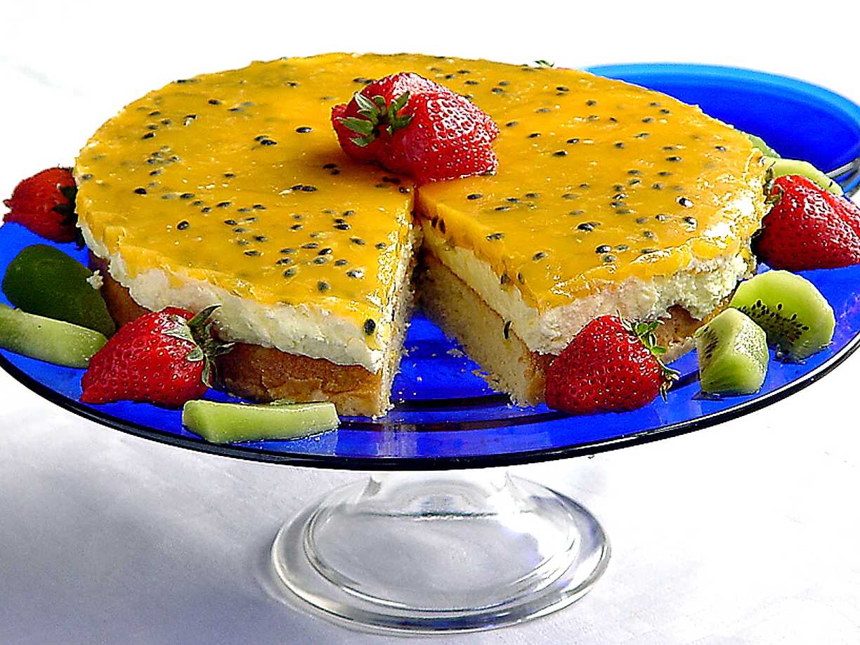 Hallon- och mangotårta