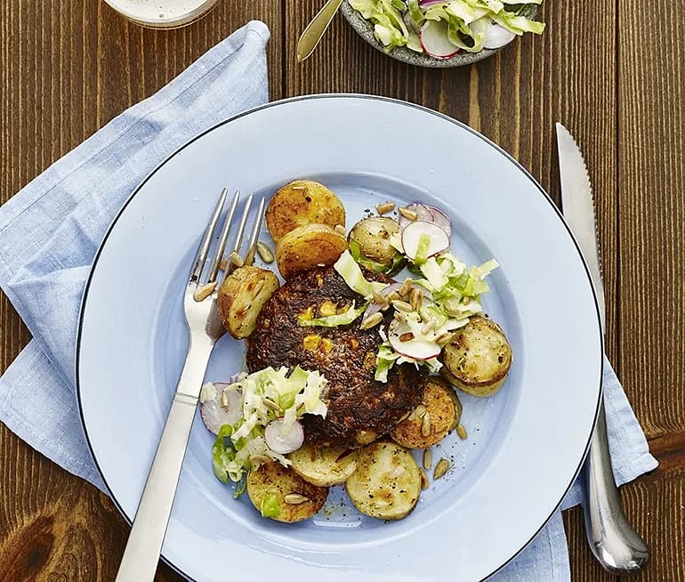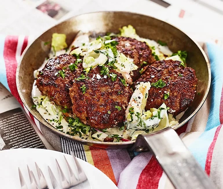 Stekt biff med ramslöksstuvad kål och örtsmör