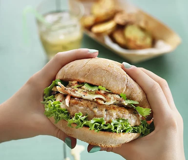 Burgare med grillost, smörstekt kål och picklad rödbeta