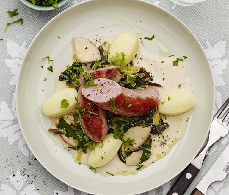 Torsk med kål, potatis, brynt smör och hasselnötter