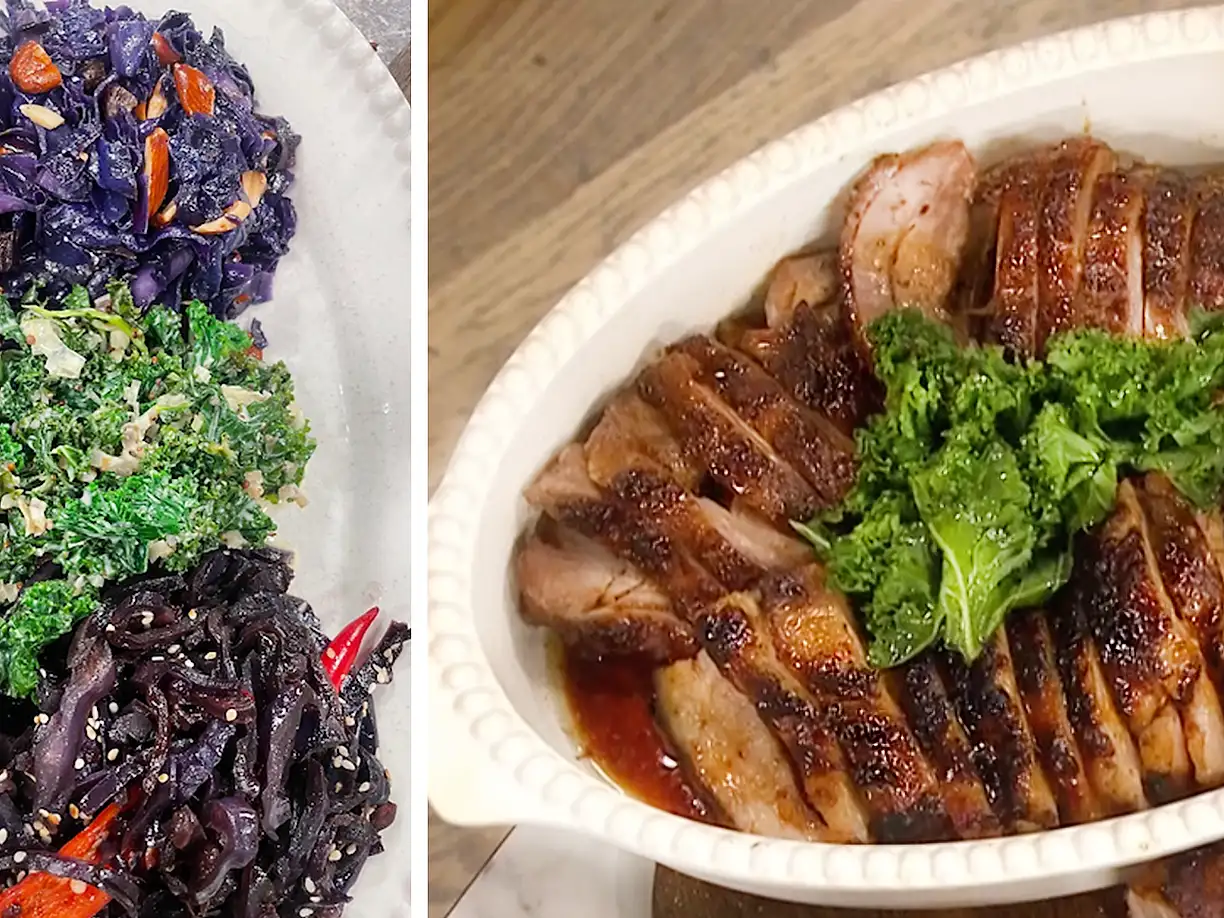 Rostad pumpa och kål med saffranshonung och bulgursallad