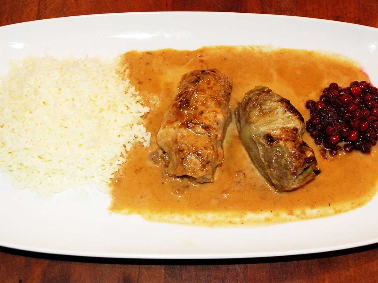 Kåldolmar med rårörda lingon