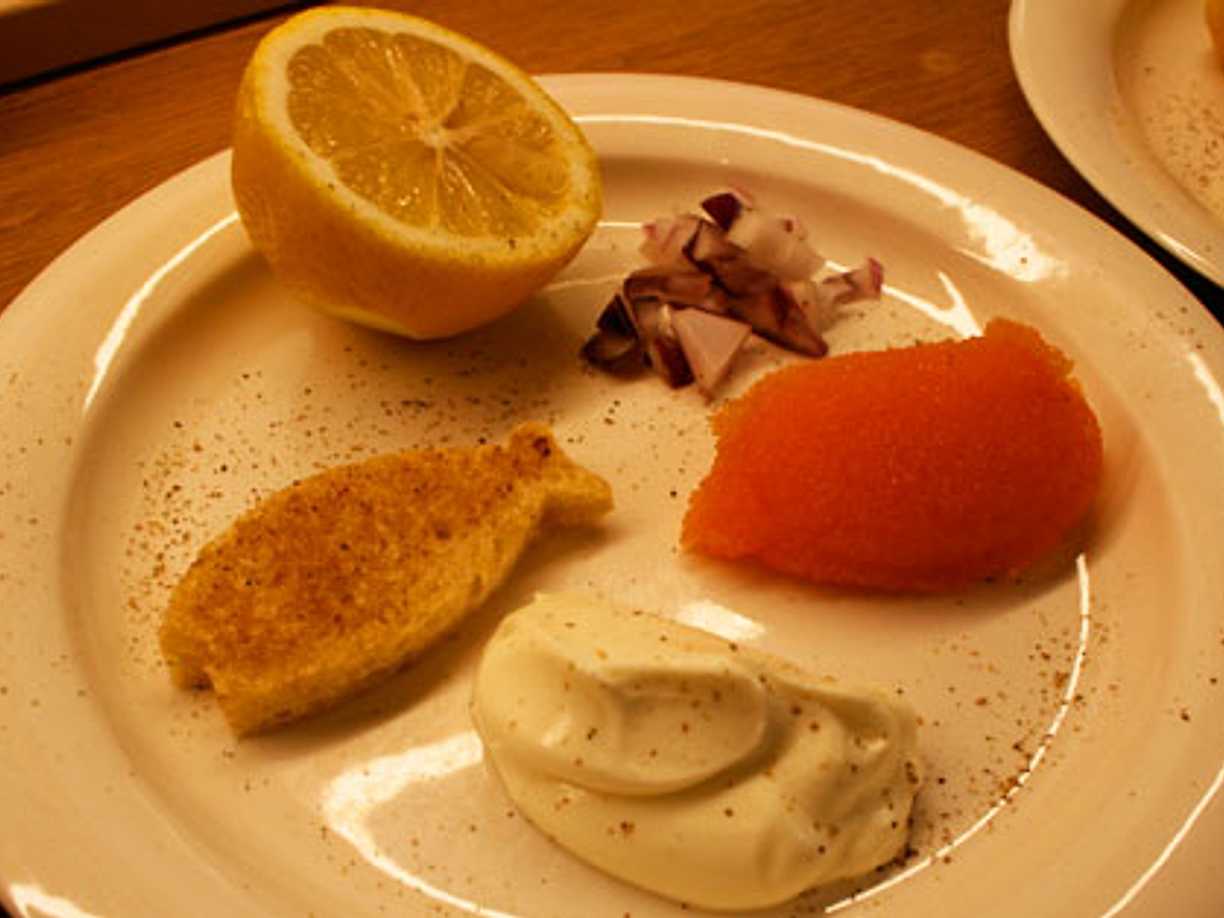 Kalixlöjrom på äggröra med rökt gräddcreme