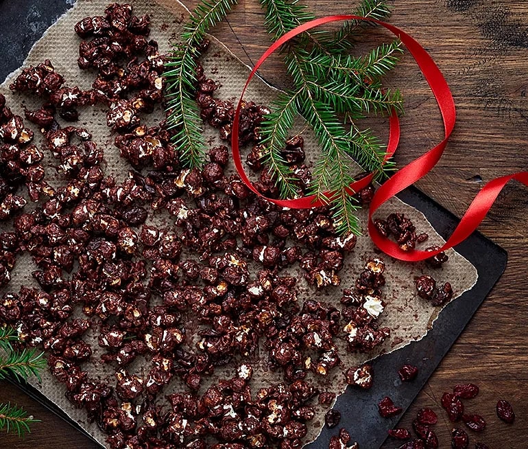 Chokladpopcorn med kanel och tranbär