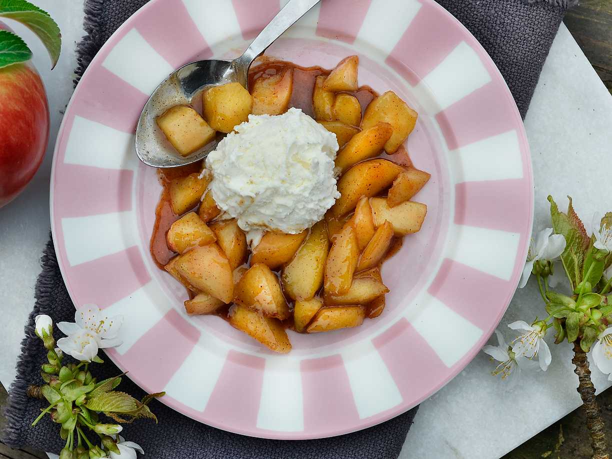 Äppelklyftor med kanel och krämig vaniljricotta