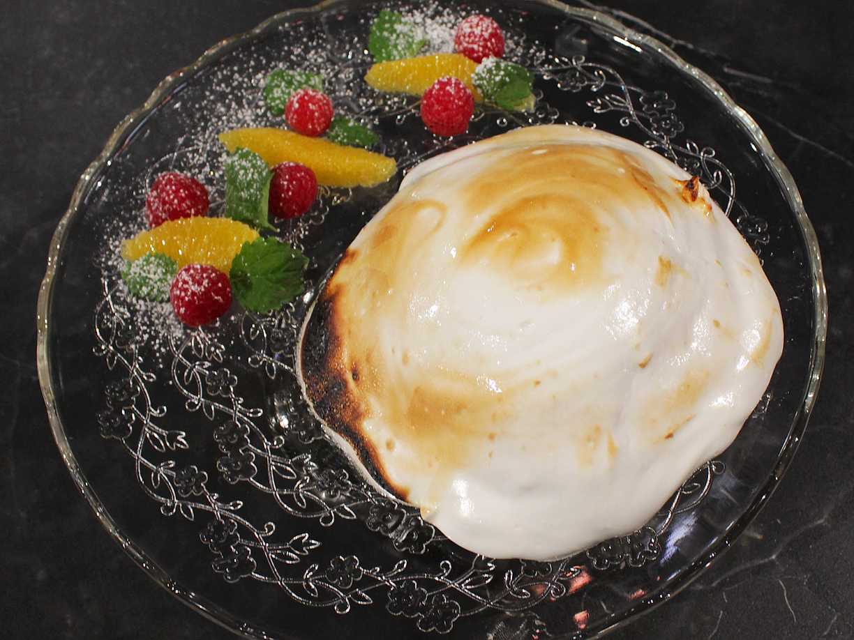 Baked alaska med apelsin- och kanelglass