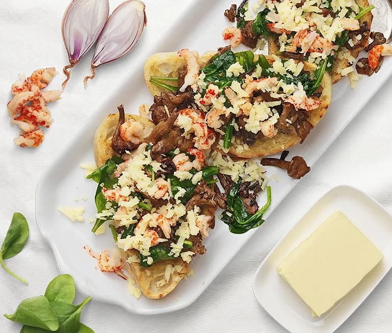 Kantarell- och kräfttoast
