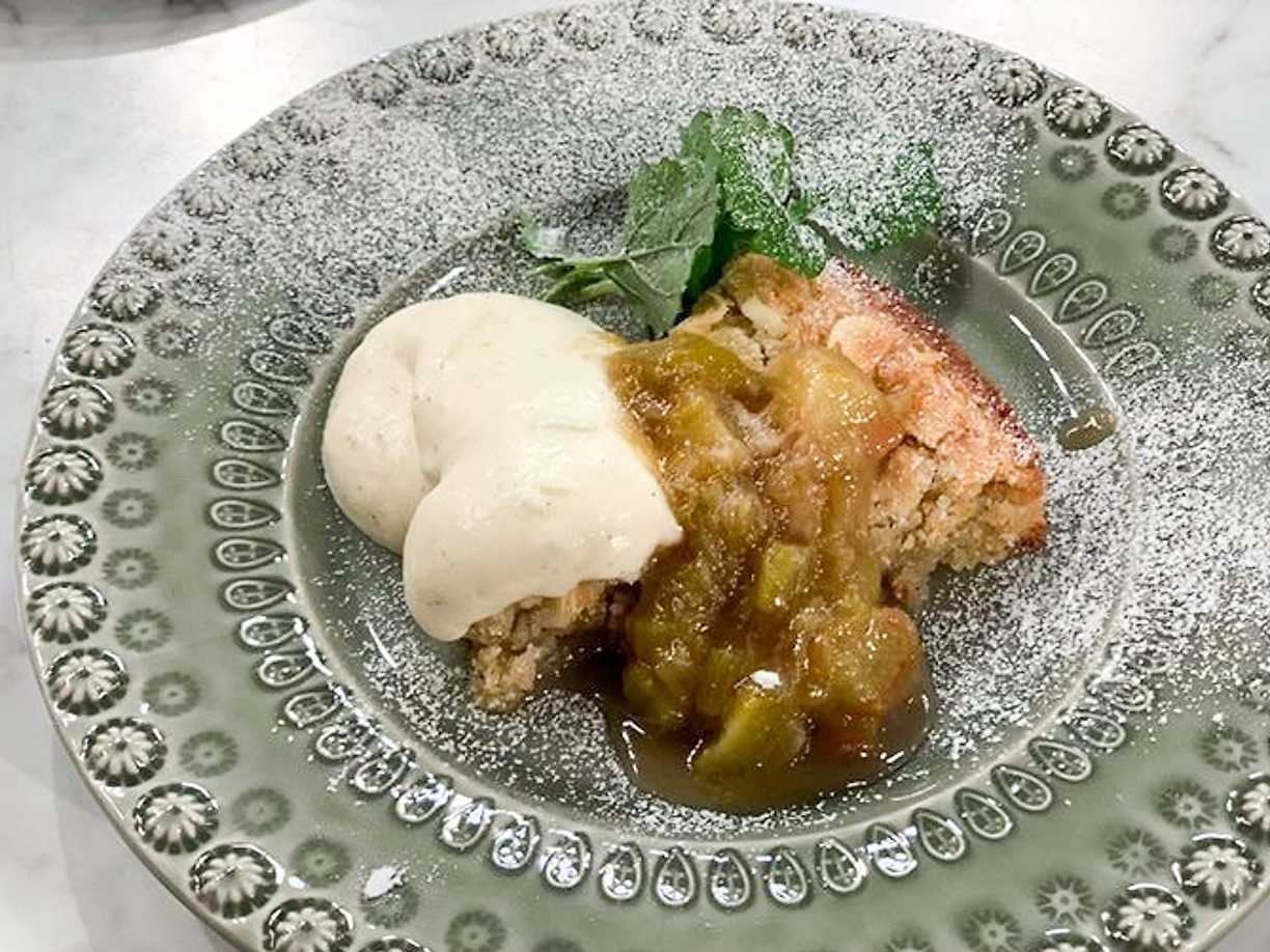 Glasrabarber med kardemummakaka