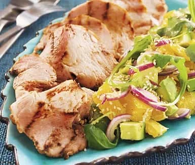 Bräckt kassler med avokado- och apelsinsalsa