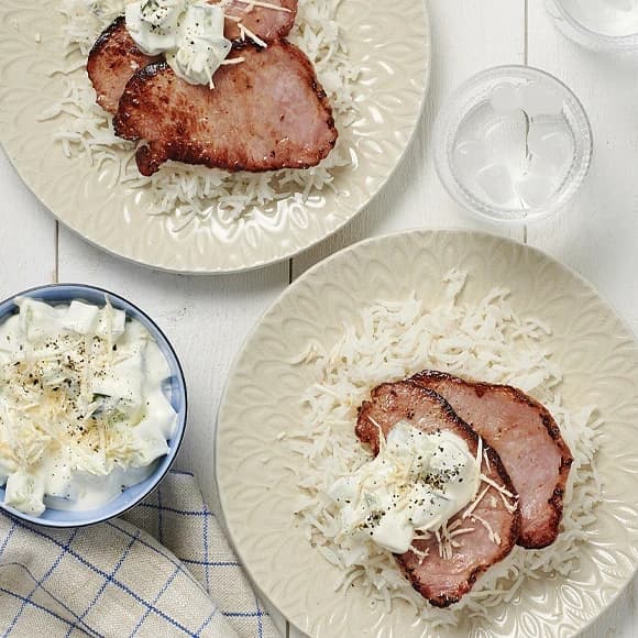 Curryris med kassler och yoghurt