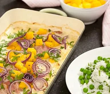 Krämig kassler med mango och ingefära