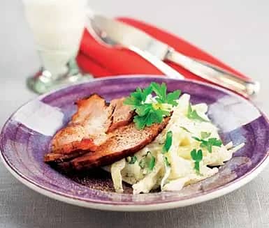 Bräckt kassler med pepparrotsstuvad vitkål