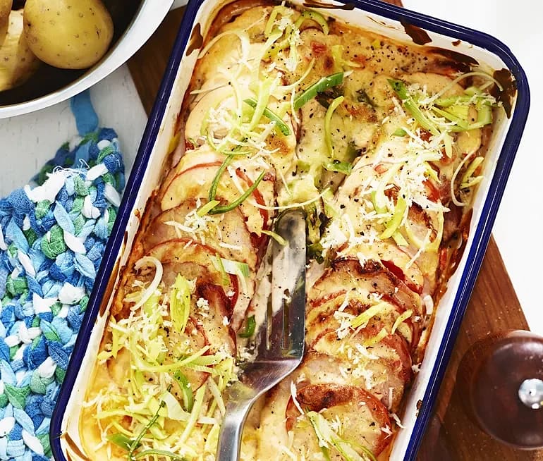 Kassler och pepparrotsgratäng