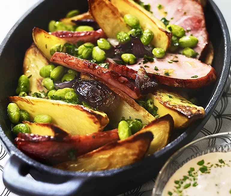 Kassler i ugn med sojabönor