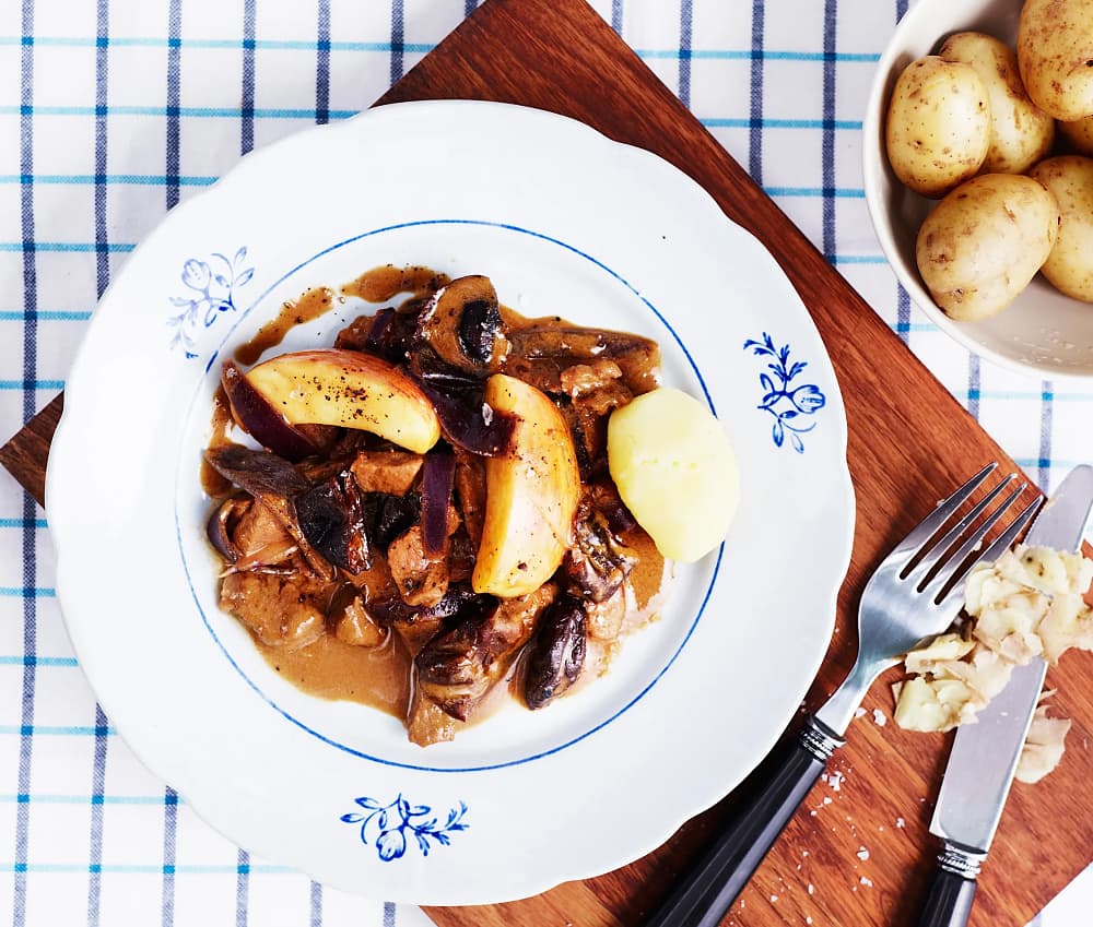 Fläskkarrégryta med katrinplommon