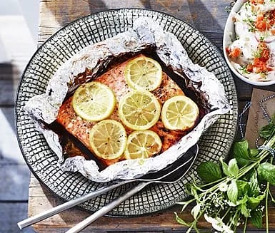 Parmesansnäcka med lax, skagenröra och svart kaviar