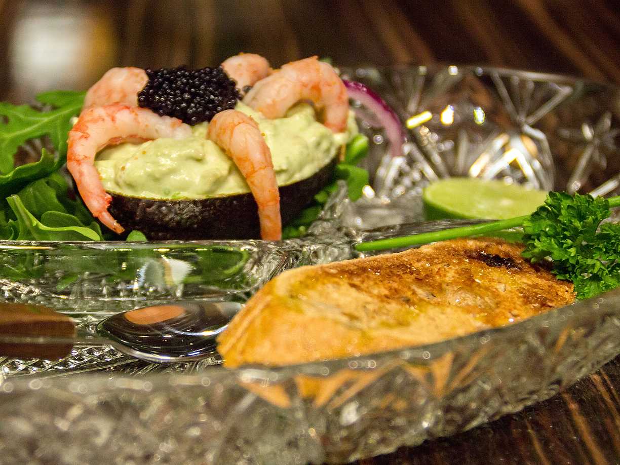 Fyllda avokadoskal med räkor och kaviar, "Ranchens räkado"