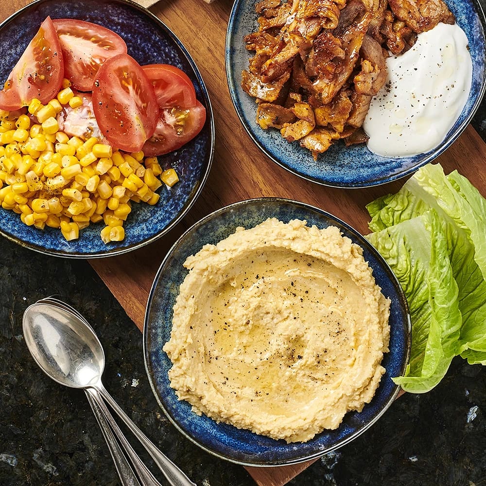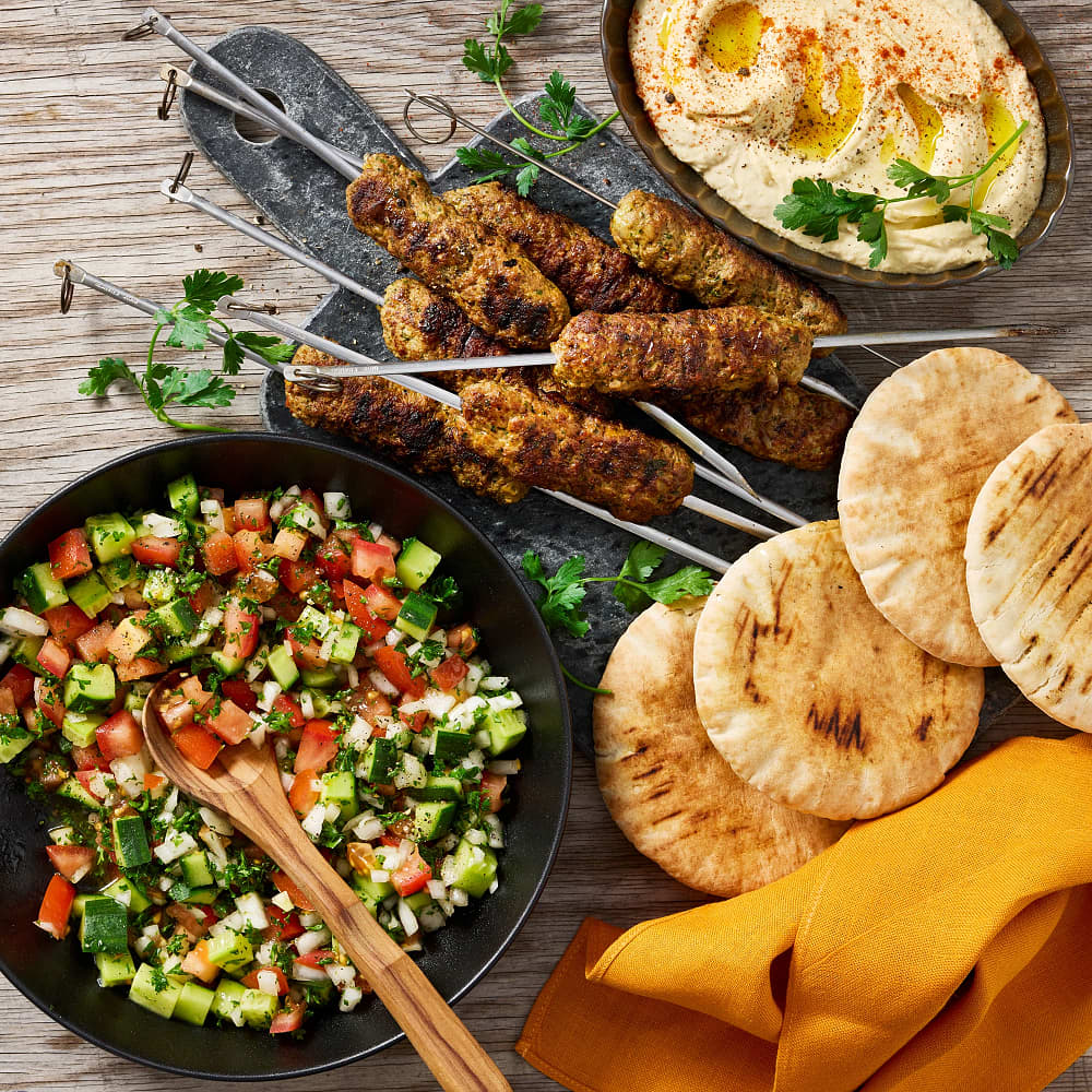 Kebab i libabröd med enkel hummus