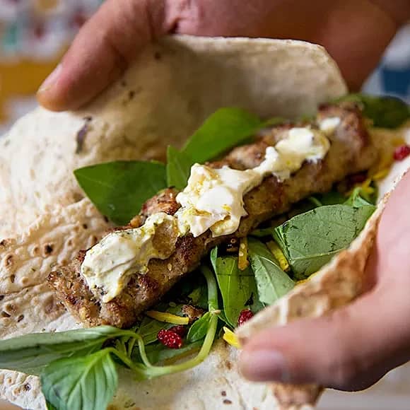 Libarulle med kebab och vitlökskräm