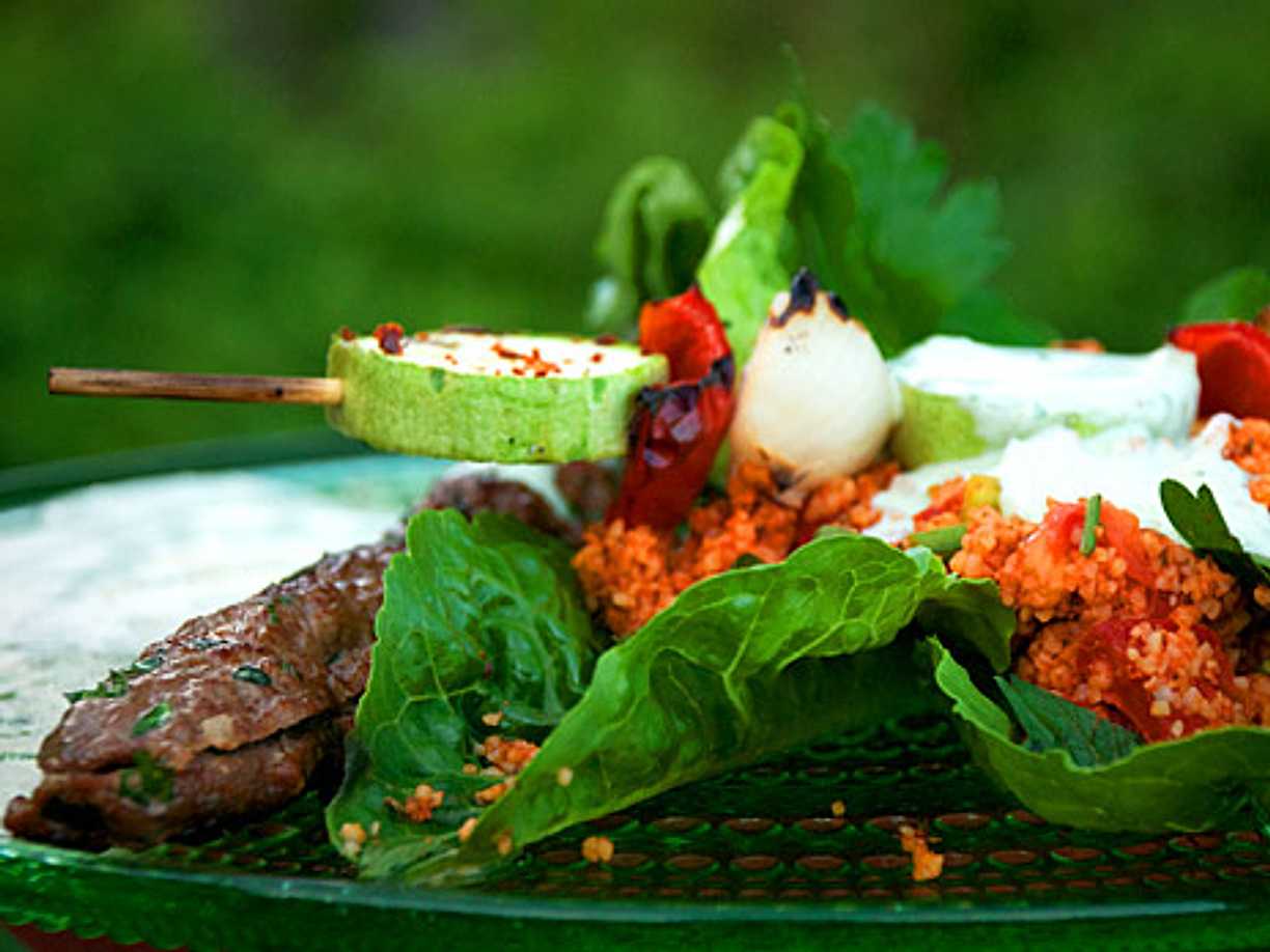 Kebab med varm sallad på pärlcouscous
