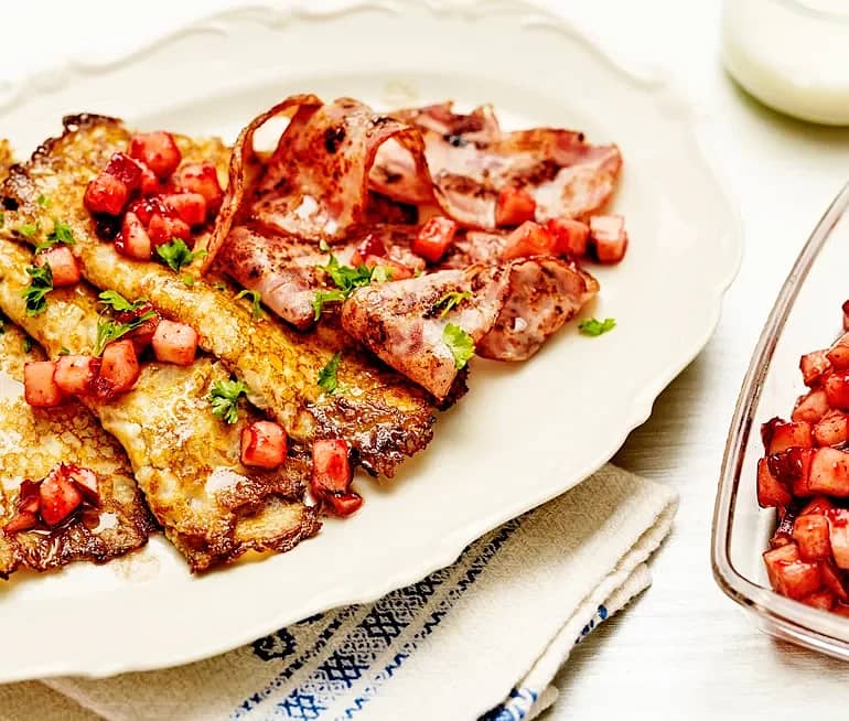 Kikärt- och vitkålspannkakor med lingon- och äppelsallad