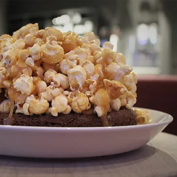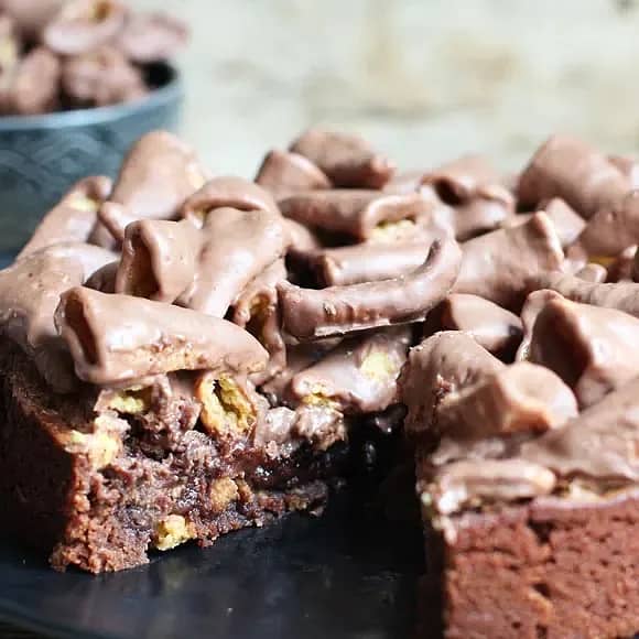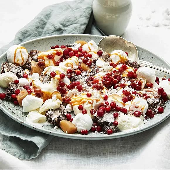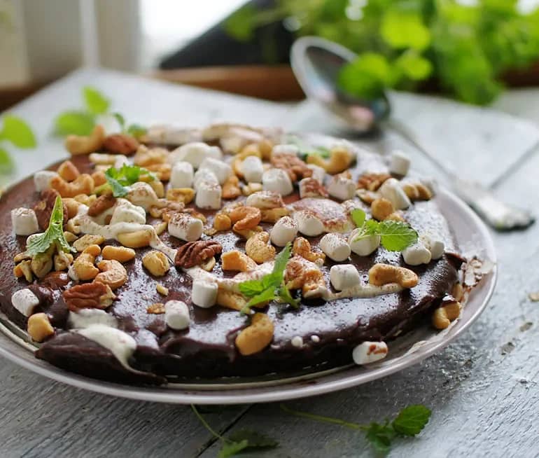 Kladdkaka med marshmallows, pecannötter och salt kolasås