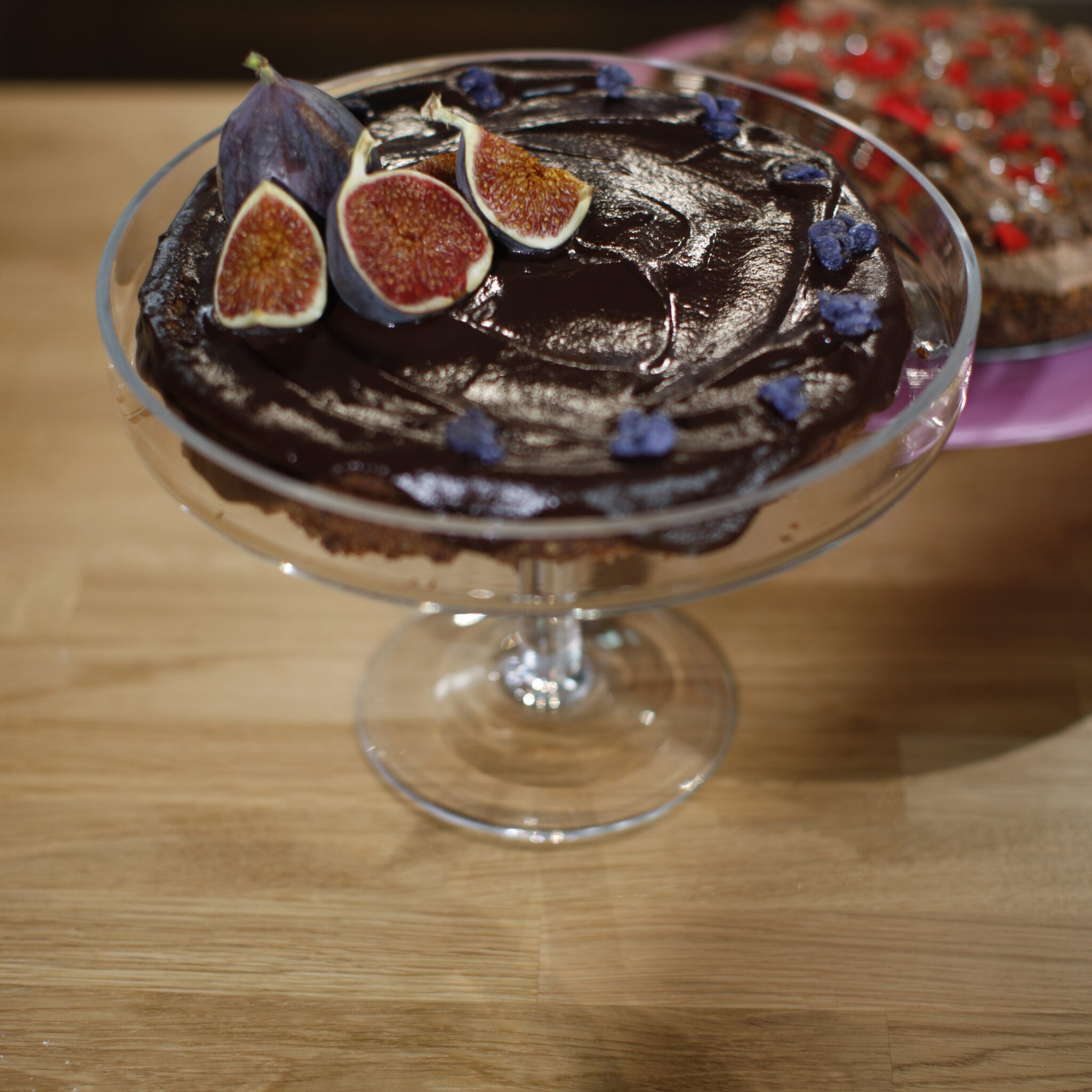 Vegansk kladdkaka med vaniljkokosgrädde och hallon