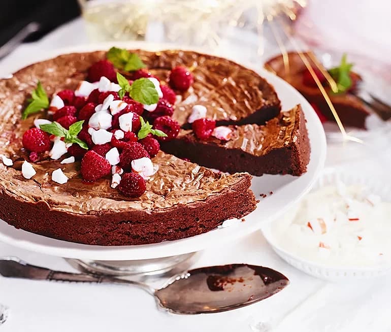 Glutenfri kladdkaka med mandelmjöl och polkagris