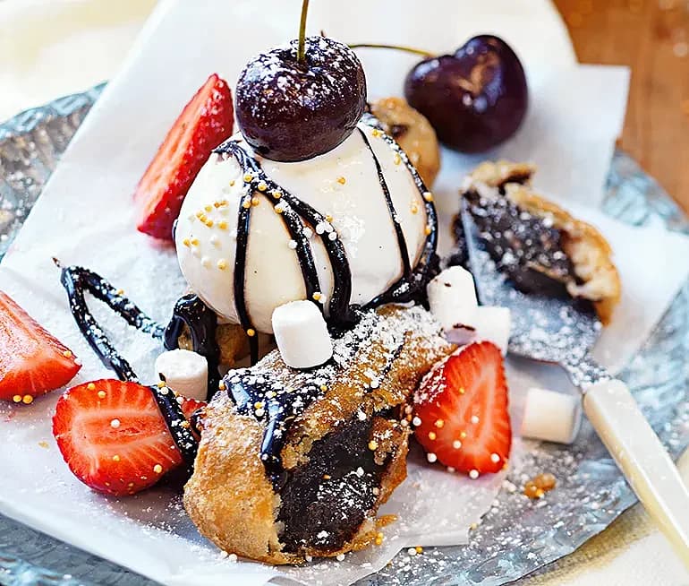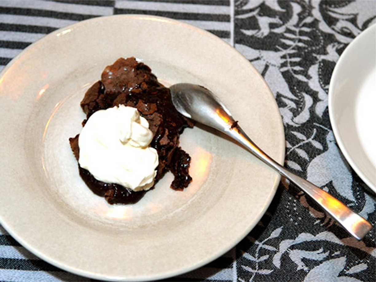 Kladdkaka med riesenfluff, kolapopcorn och kolasås