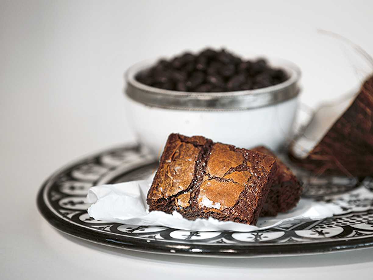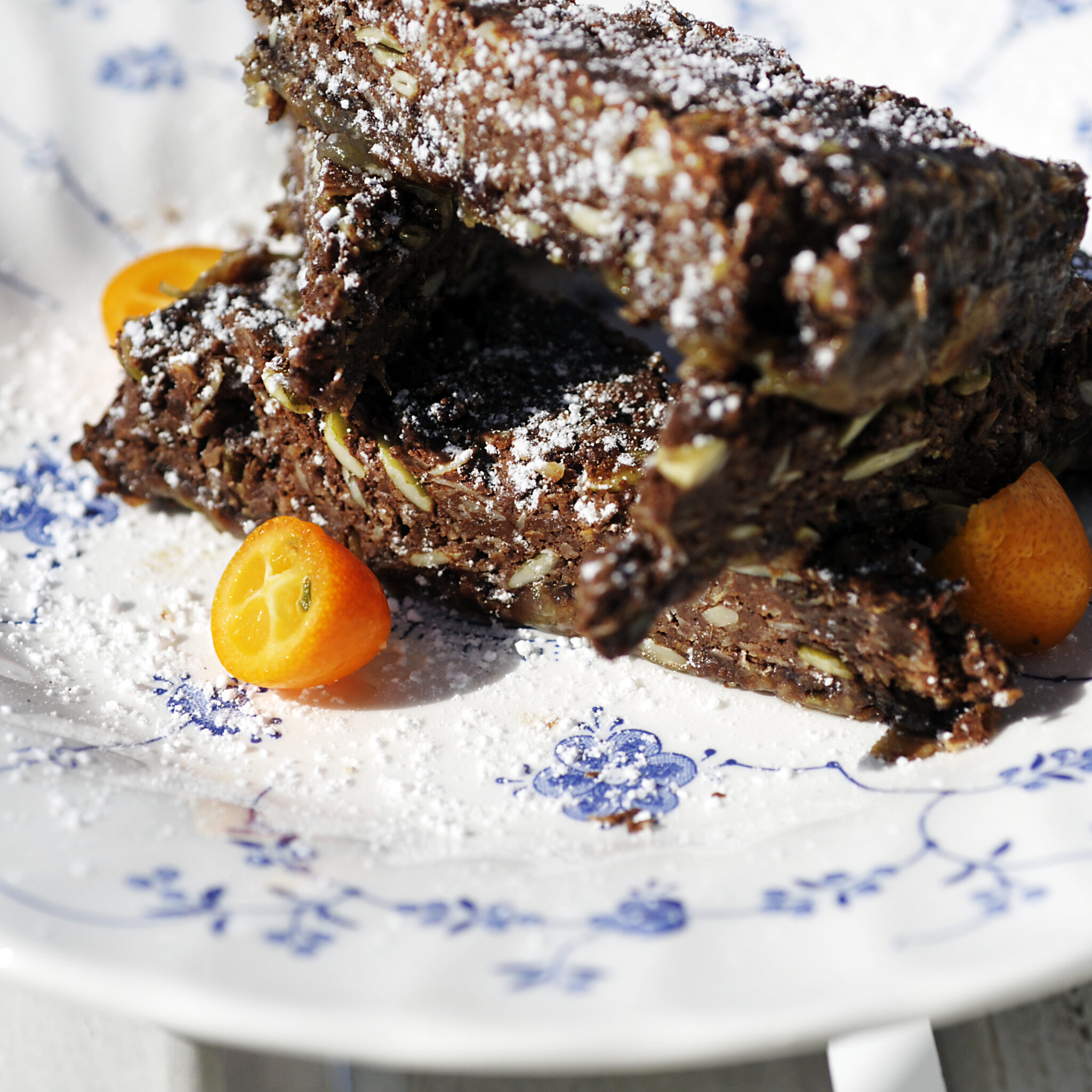 Kladdkaka med kokos, sesamfrön och ringblomma
