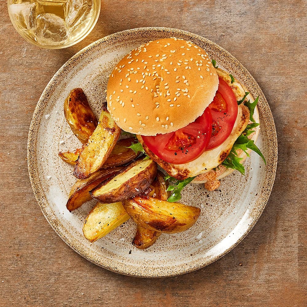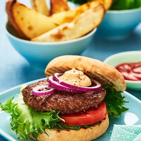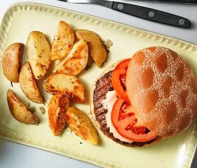 Hamburgare med klyftpotatis