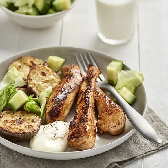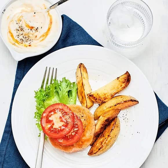 Kycklingfilé med vitlökssås och klyftpotatis