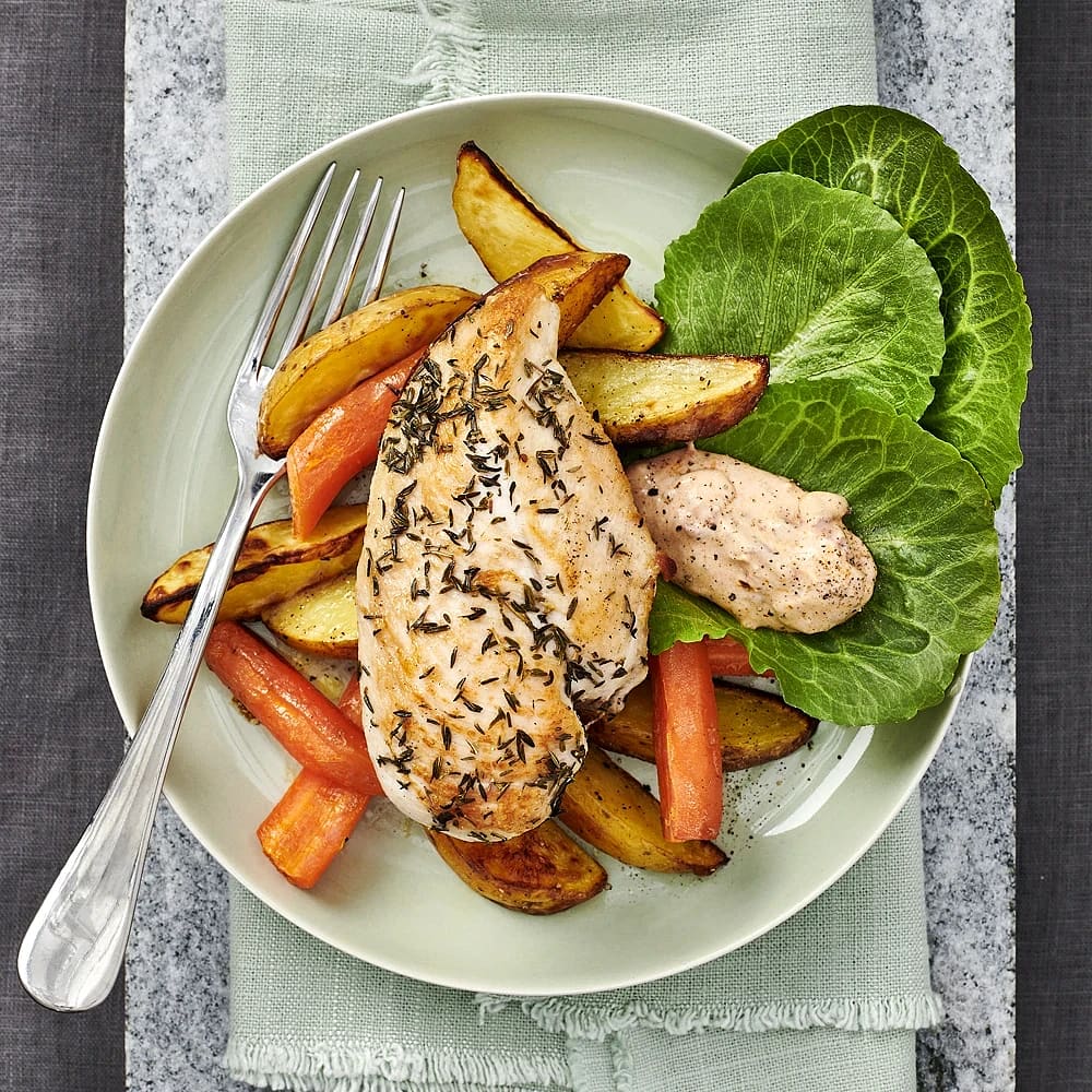 Kycklingfilé med klyftpotatis och fänkålssallad