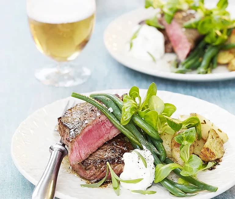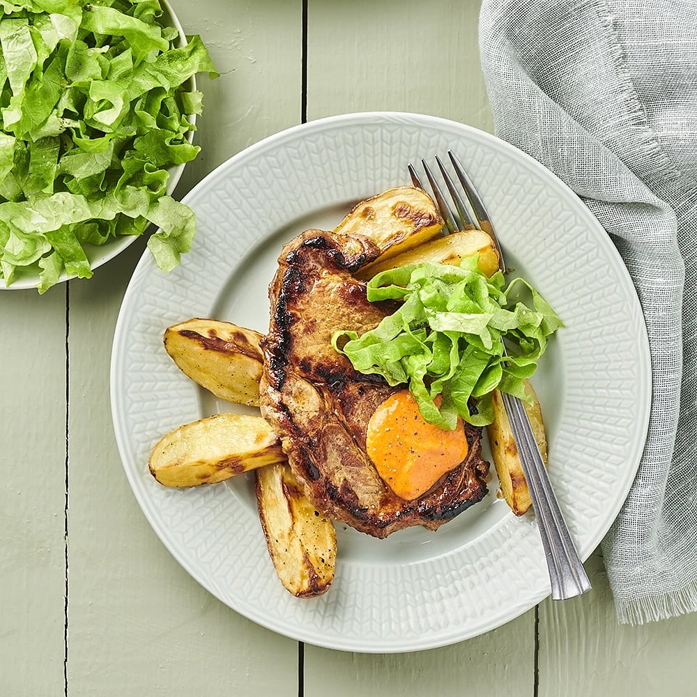 Stekt ryggbiff med smetanabearnaise och klyftpotatis