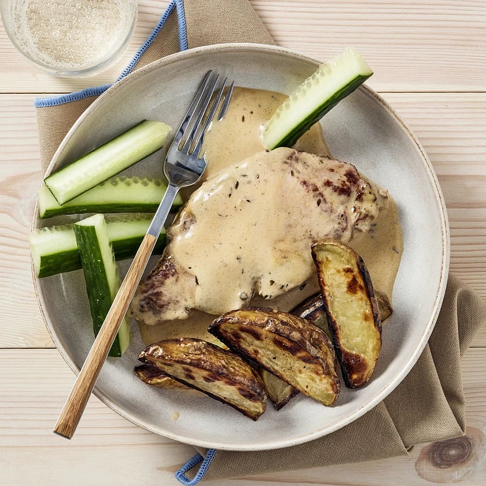 Kotlett i krämig sås med klyftpotatis