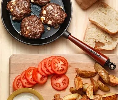 Jugoslaviska biffar med klyftpotatis