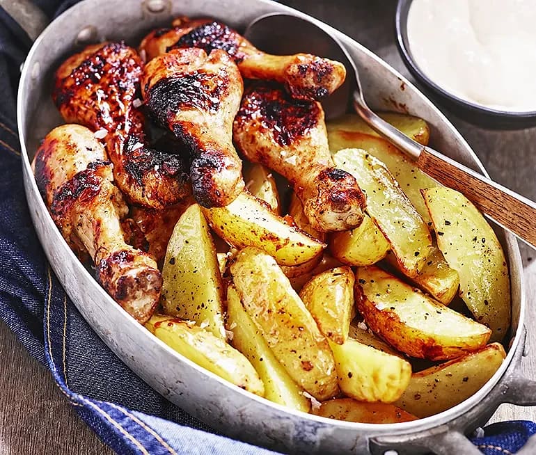 Ugnsstekt kyckling med klyftpotatis