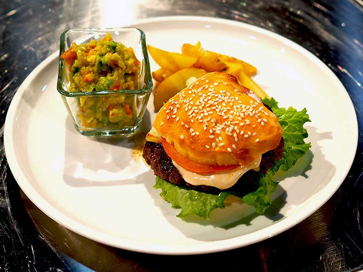 Högrevsburgare med klyftpotatis och guacamole