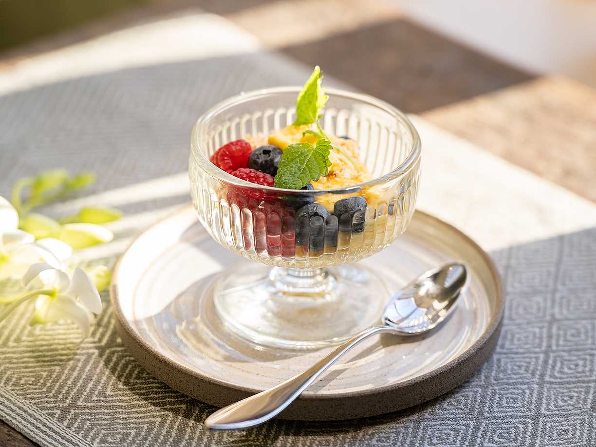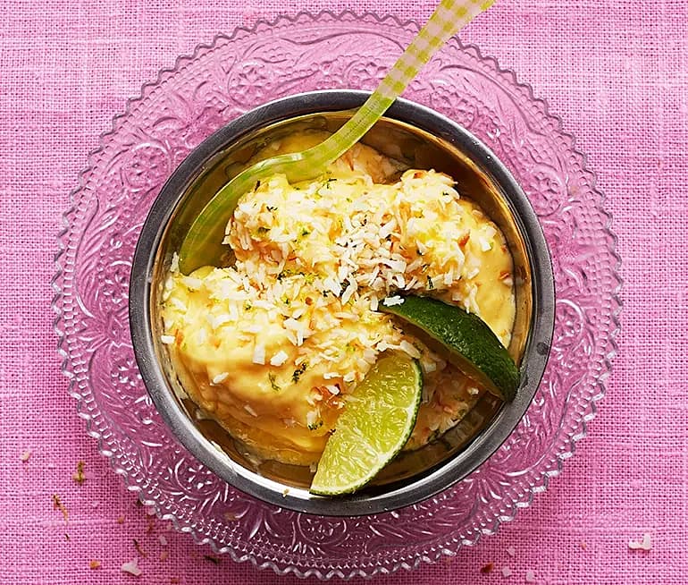 Thailändsk pannacotta med kokos, lime och färska jordgubbar