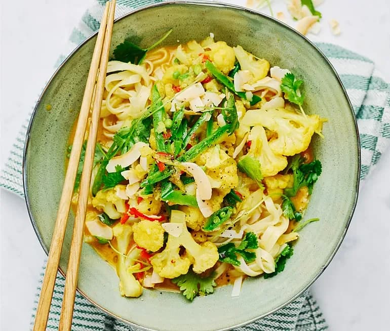 Ugnsbakad blomkål med kokos och rostade kikärtor