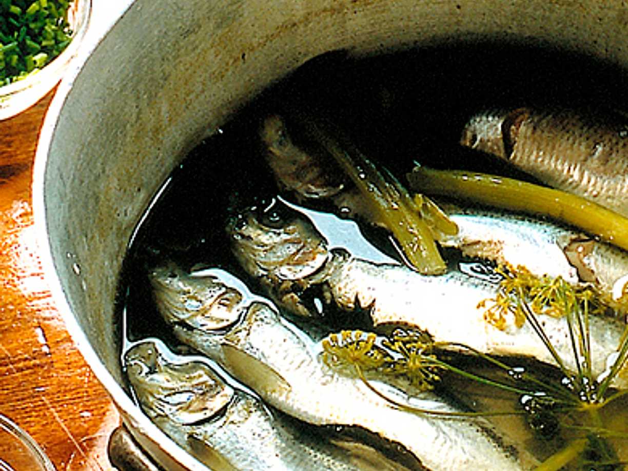 Kokt torskrygg med hackat ägg, skirat smör och pepparrot