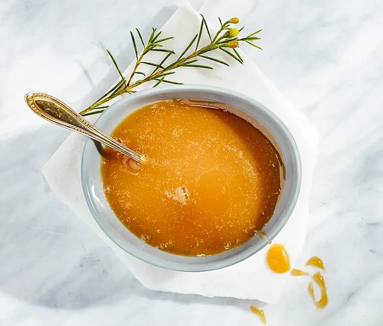 Vaniljglass med karamelliserade popcorn och salt kolasås