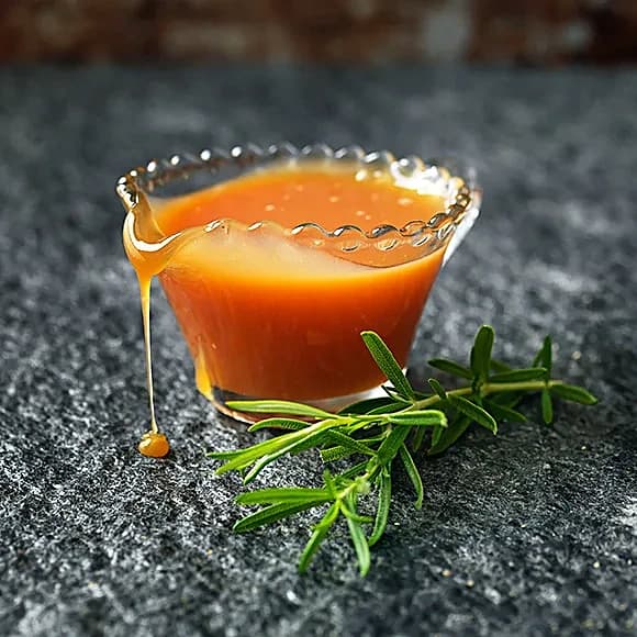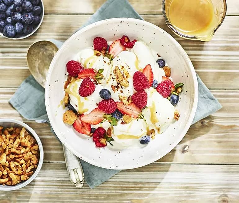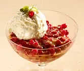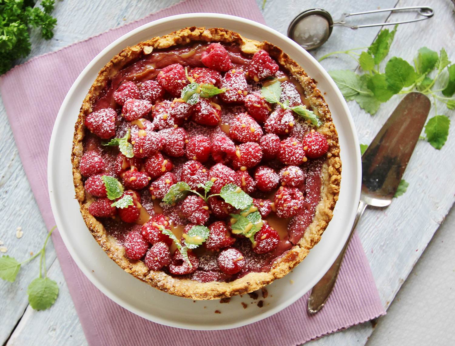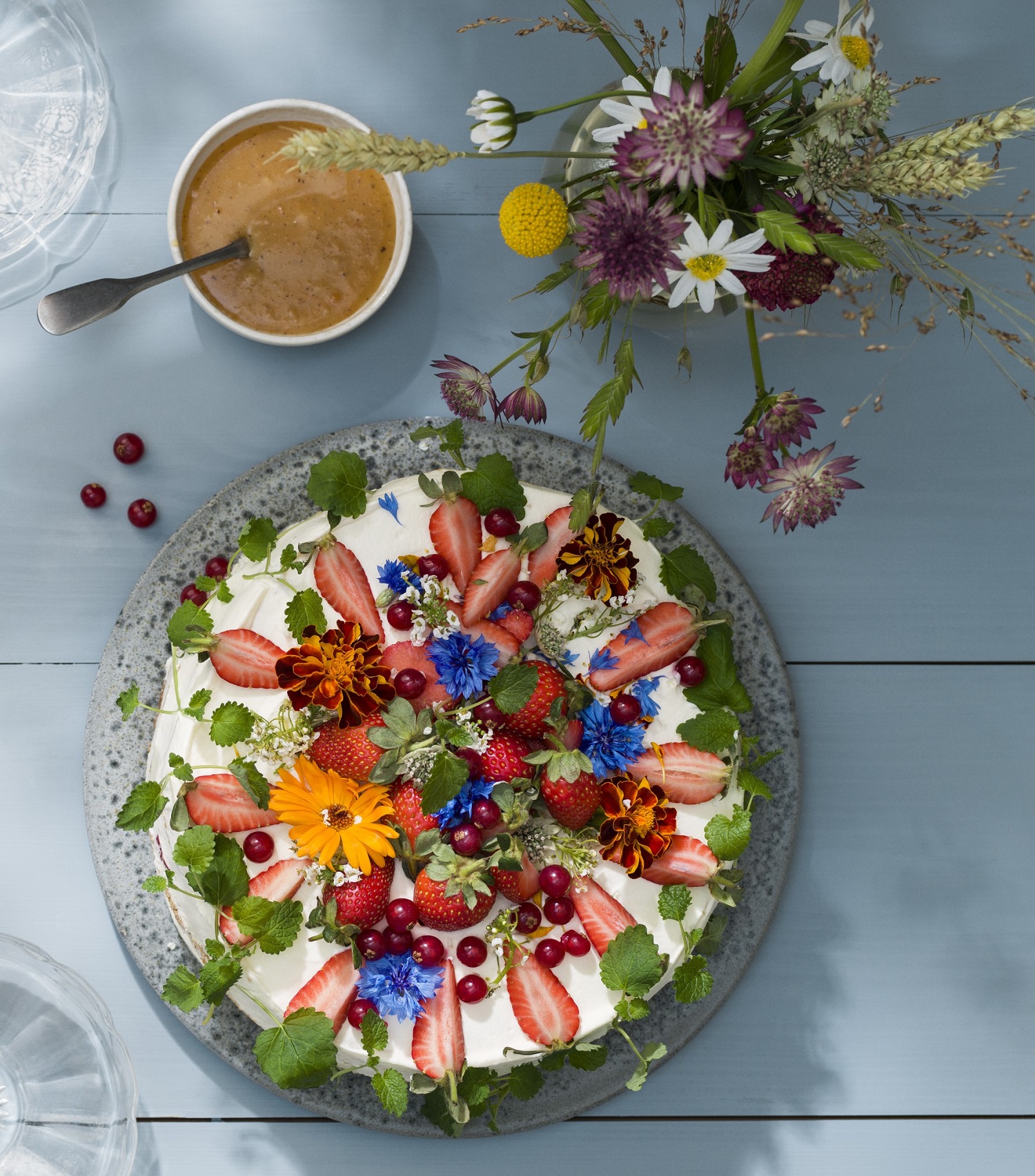 Kolasås med Västerbottensost, glass, crunch och färska bär