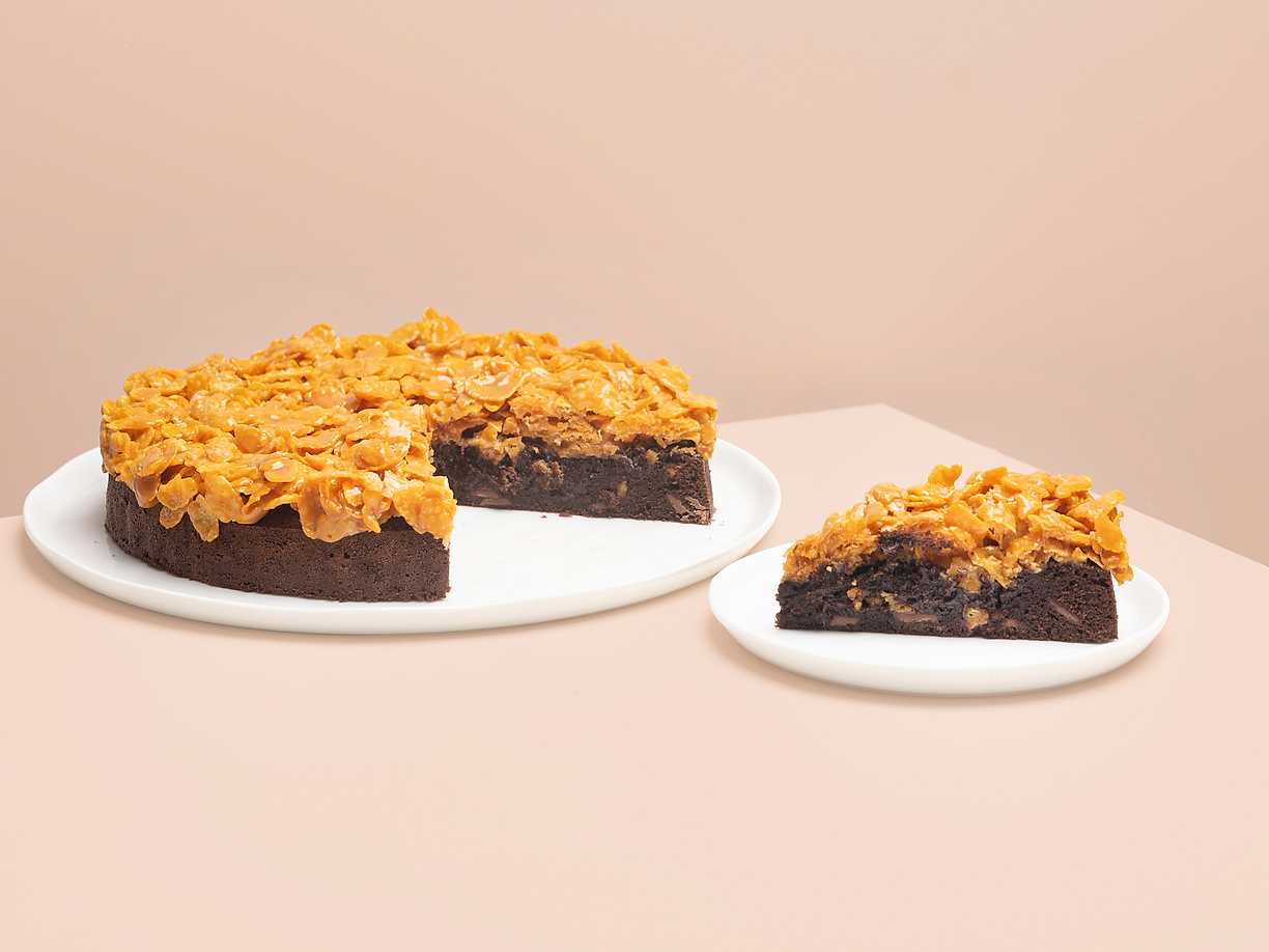 Kladdkaka med popcorn, cashewnötter och kolasås