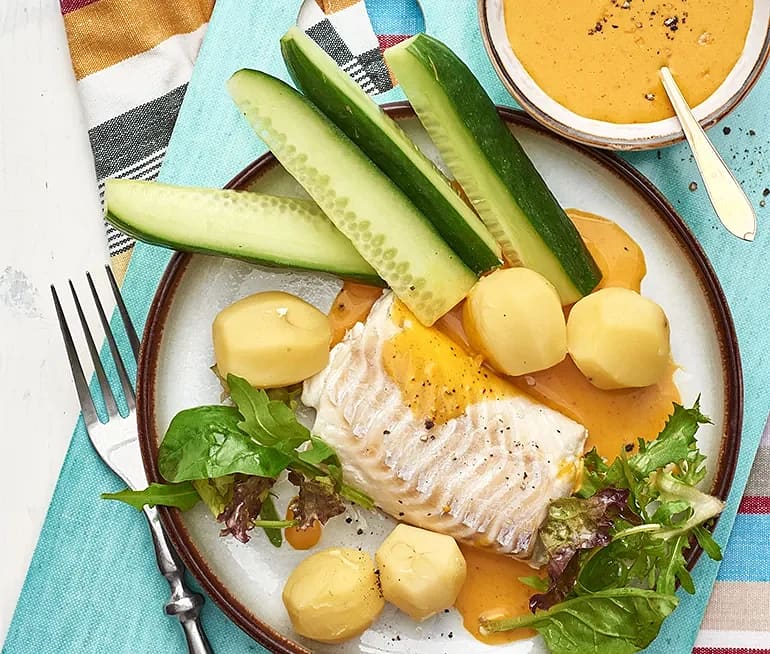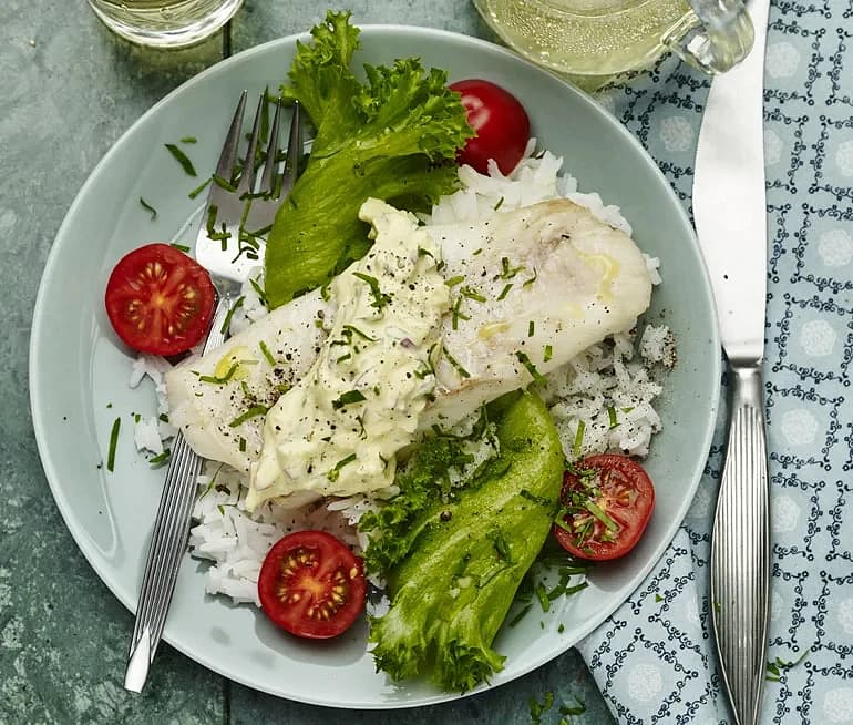 Kolja med ljummen gubbröra och syrlig sås