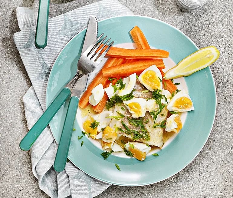 Kolja med ägg och smält smör