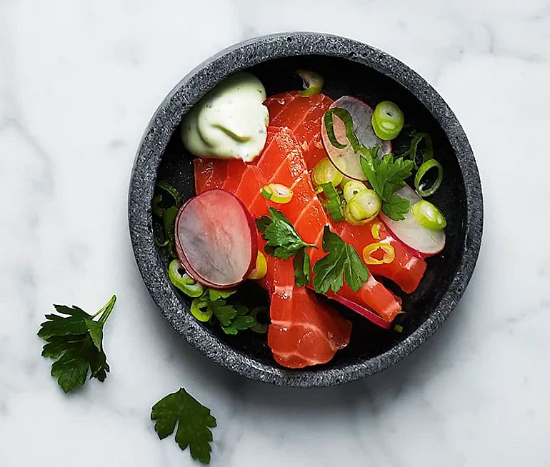 Snabbgravad ingefärslax med koriandermajonnäs