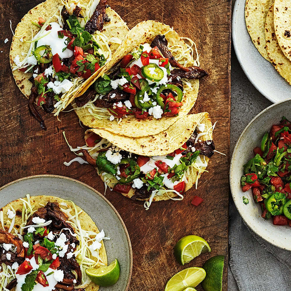 Tacos med chipotlesvamp, koriandersalsa och fetaost